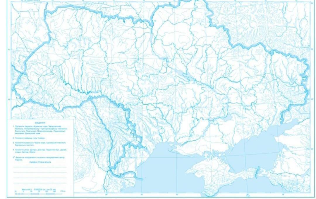 підпішіть на контурній карті назви найбільших річок України Дніпро, Дунай, Південний Буг, Дністер, Сіверський Донець