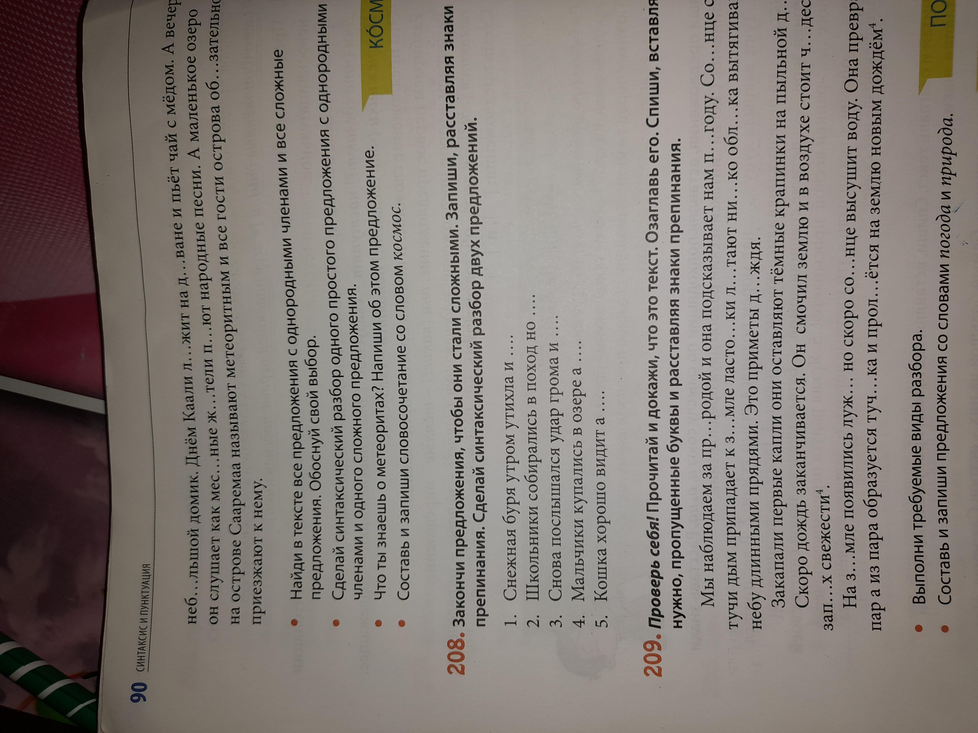 Закончи предложения,чтобы они стали сложными.Запиши, расставляя знаки препинания. Сделай синтаксический разбор двух предложений. Упражнение 208