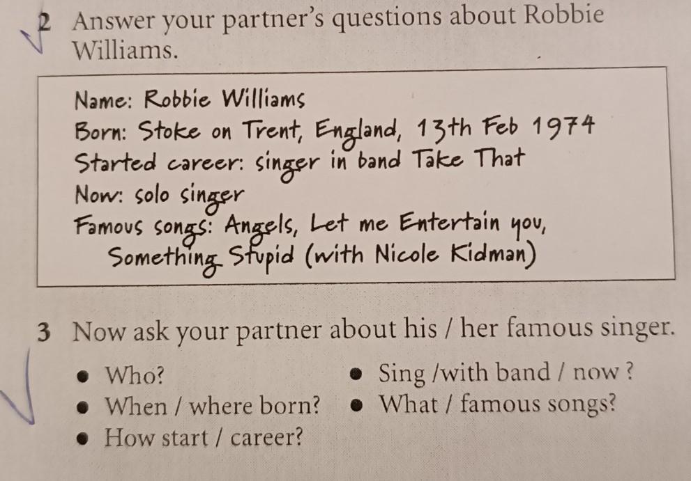 в задании нужно спросить у партнёра по заданию про его любимого исполнителя,но я написала просто про рандомного.