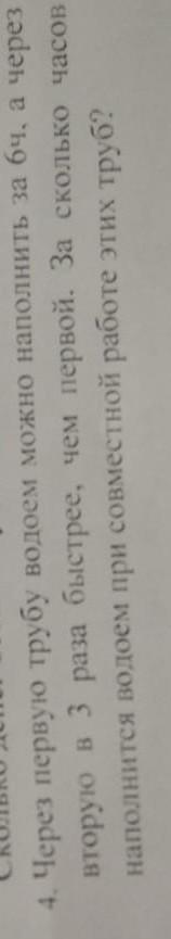 4. Через первую трубу водоем можно вторую в 3 раза быстрее, чем наполнится наполнить за 6ч, а За сколько первой. водоем при совместной работе этих труб? через часов