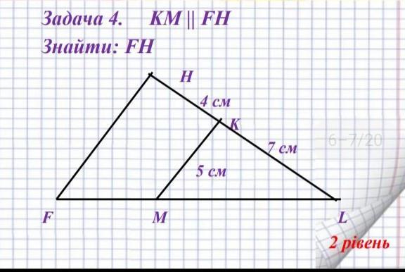 LH=LK+KH=7+4=11 => 7/11=5/FH => FH=5*11/7