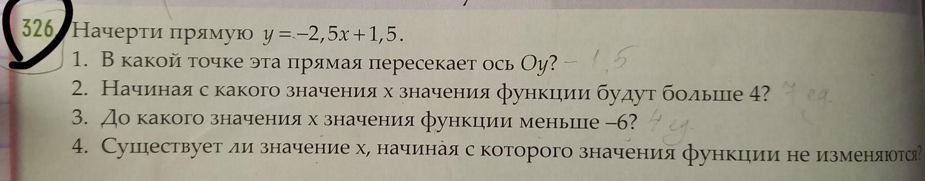 1. График пересекает ось Y в точке X = 0, Y = 1.5
