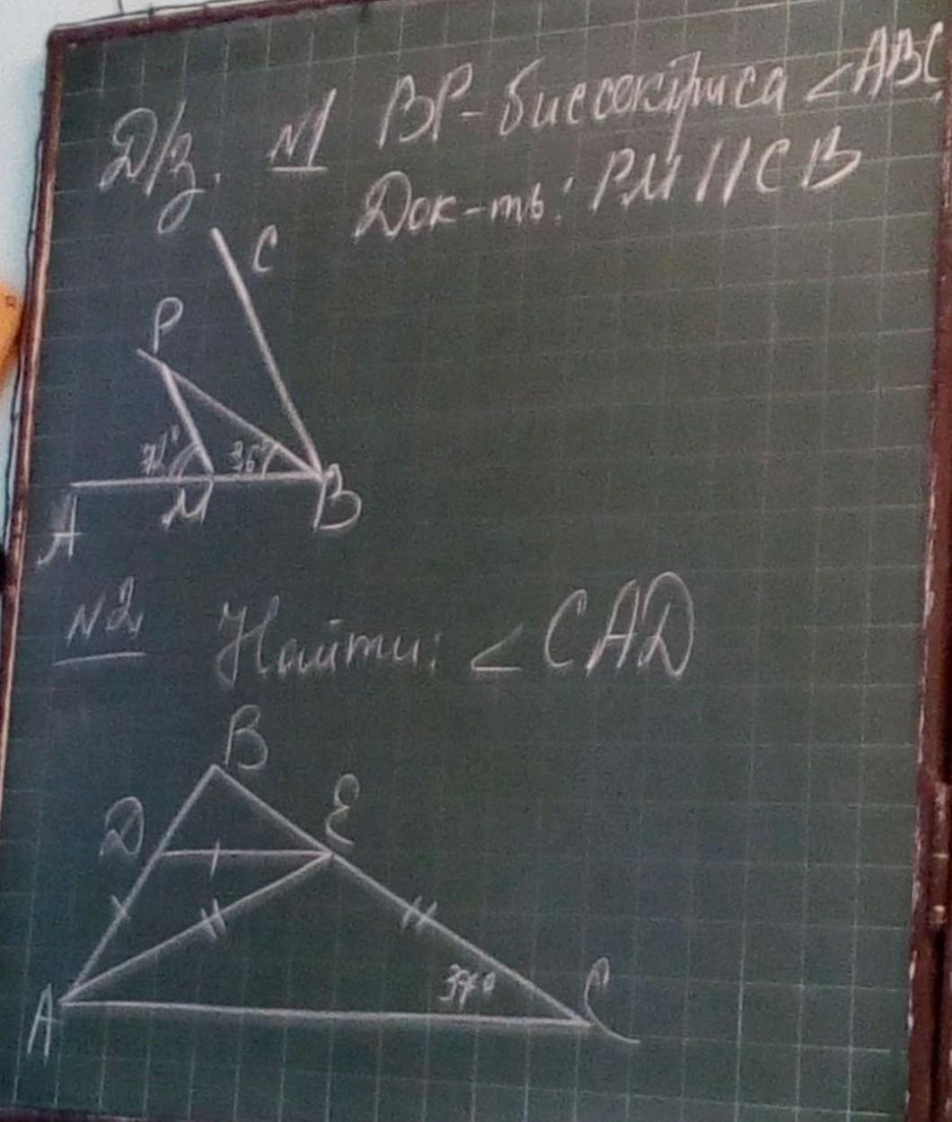 1. РВ биссектриса, значит угол РВА = углуРВС. угол АВС = 36°+36°= 72°= углу РМА. значит прямые параллельны.