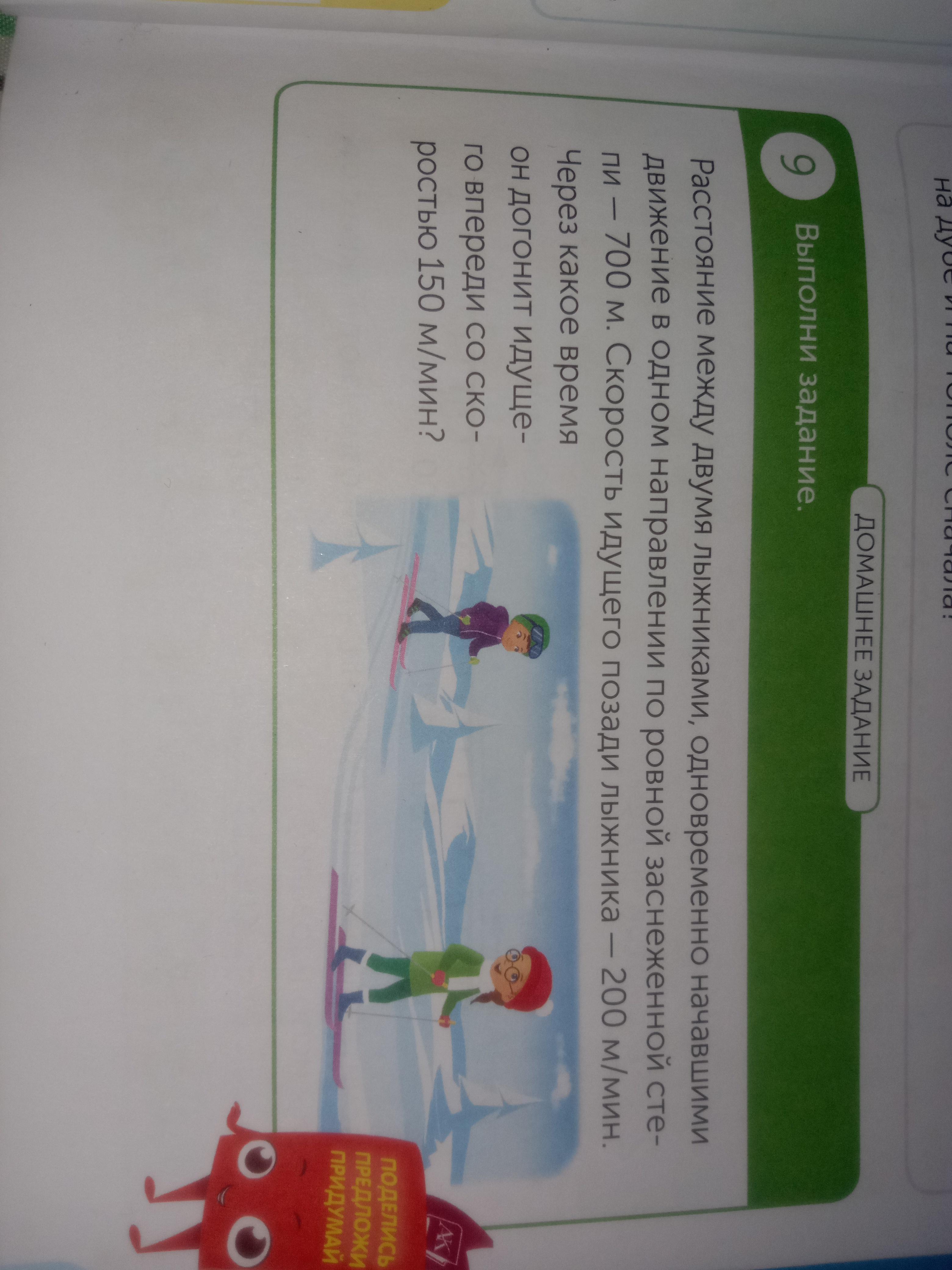 (ЗАДАЧА РЕШЕНИЕ НЕ НАДО,МОЖНО УСЛОВИЕ ПЛИС)Со станции одновременно вышли два поезда в противоположных направлениях. Скорость идущего позади лыжника-200 м/мин. Через какое время он догонит идущего впереди со скоростью 150 м/мин?,