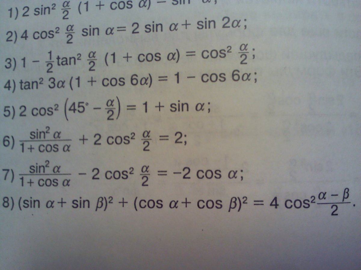Выручайте,с 3-его по 8-ой пример,нужно доказать тождество,хоть что-то.Заранее спасибо.