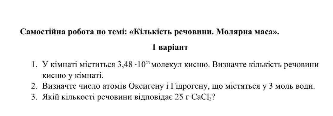 У кімнаті міститься 3,48 ⋅10^23 молекул кисню. Визначте кількість речовини кисню у кімнаті.