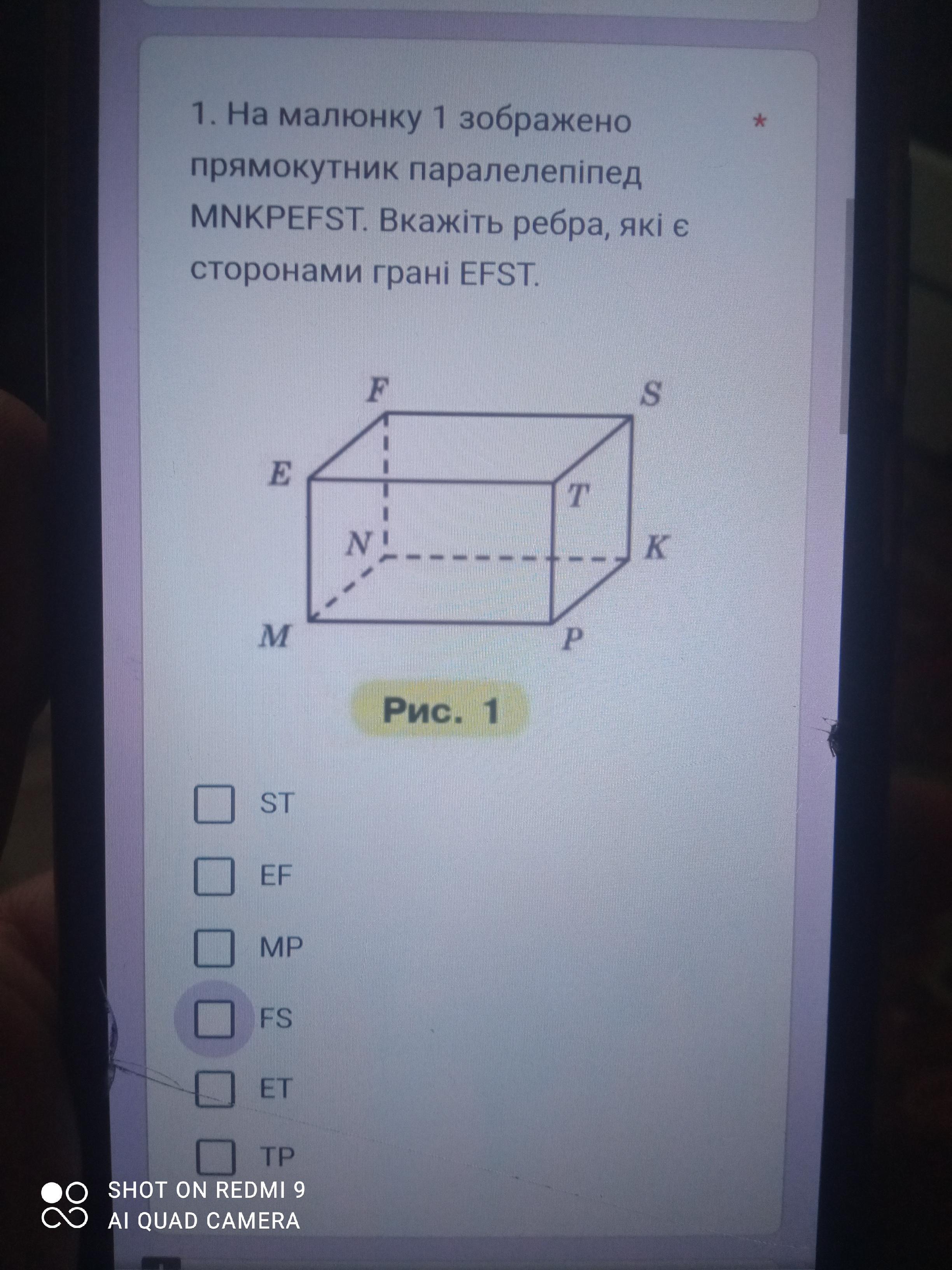 Питання полягало у тому, щоб вказати ребра конкретної грані. Малюнок, варіонти відповіді також. Я вказала назви ребер паралелепіпеда. А поверхня прямокутного паралелепіпеда складається із шести прямокутників, які називають гранями. Сторони цих прямокутників називаються ребрами. От і все. Це ж елементарно.