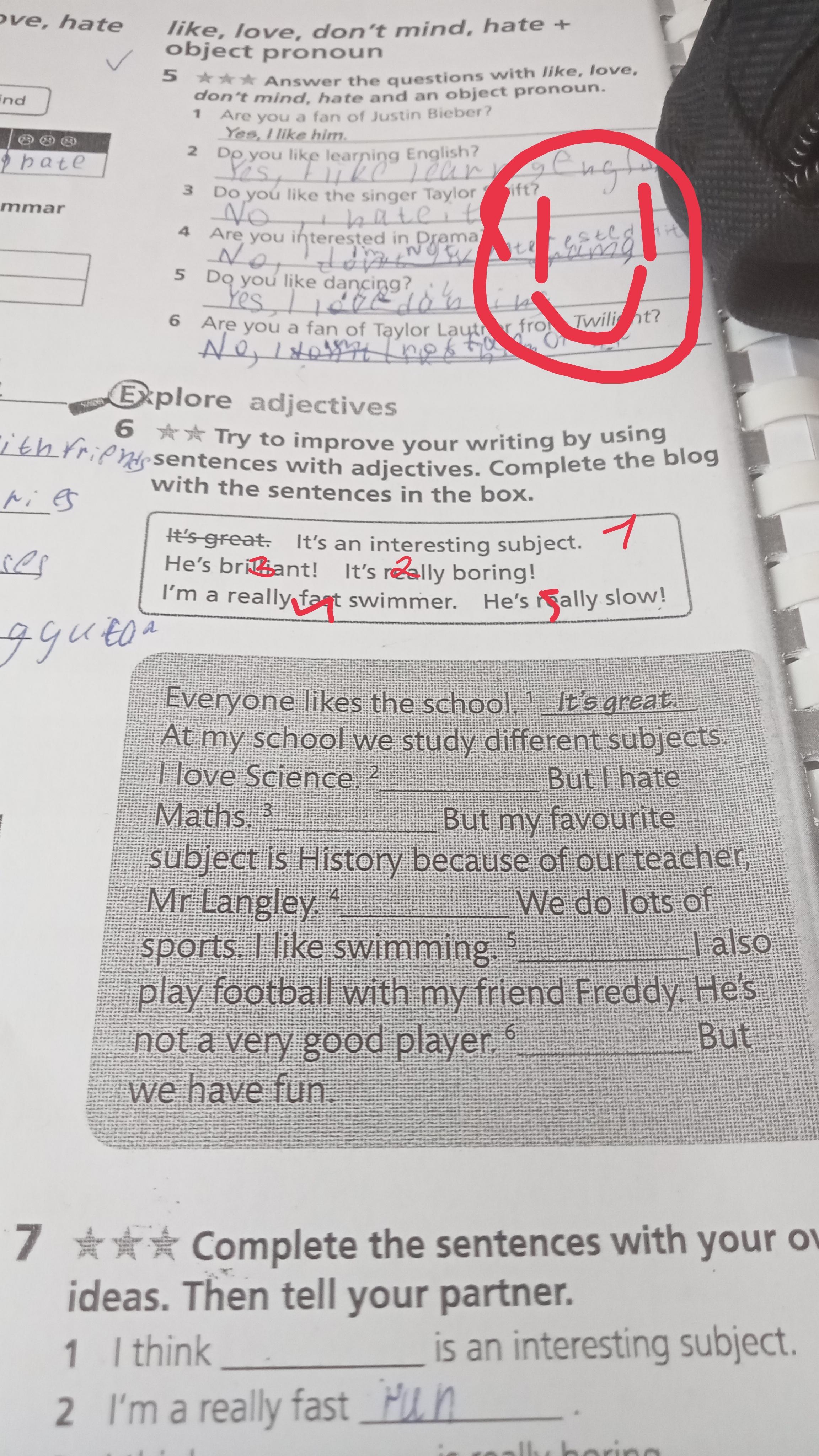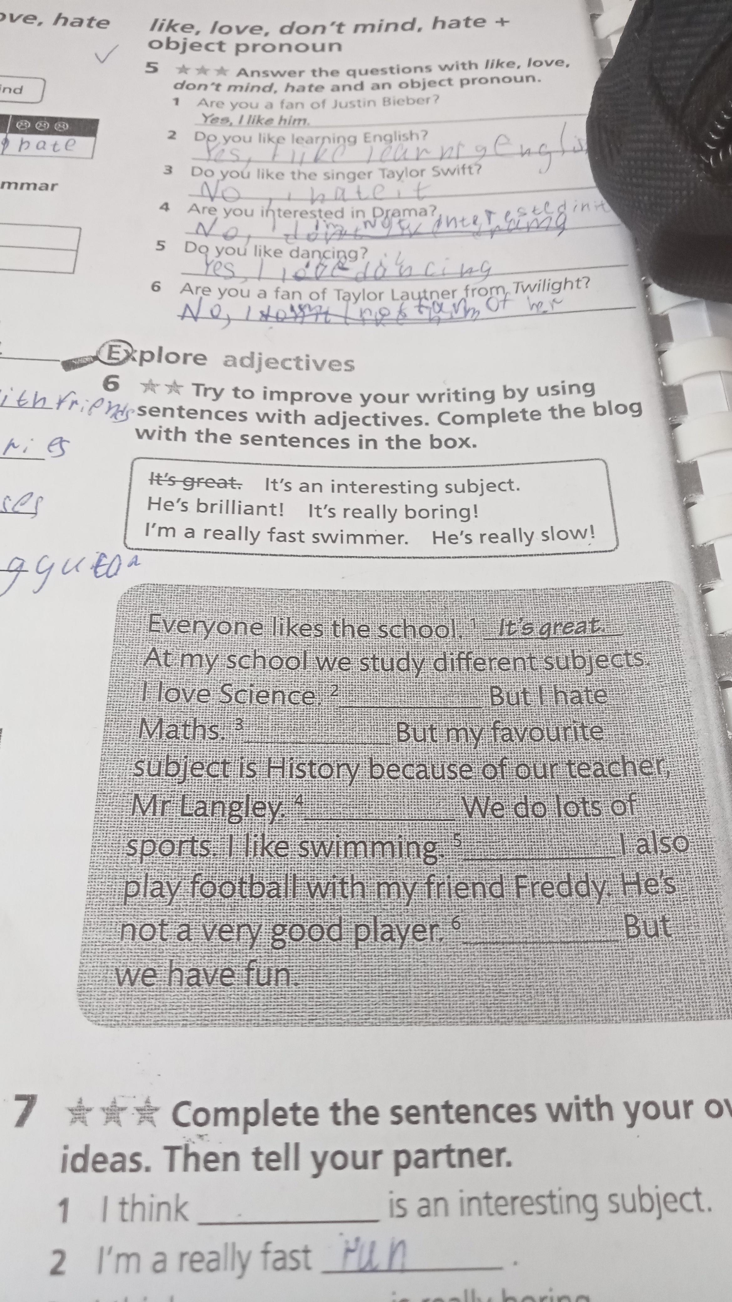 try to improve you writing by using sentences with adjective. Complete the blog with the sentences in the box