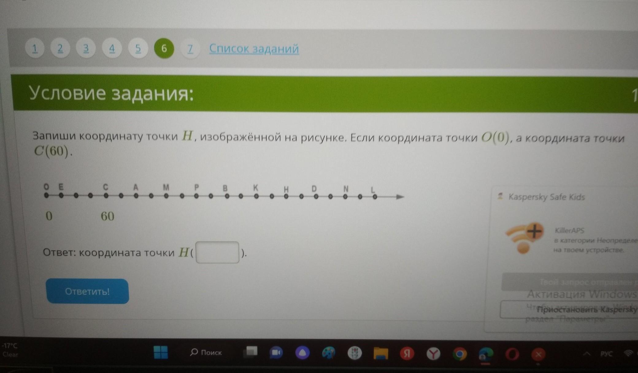 Запишите координату точки , изображённой на рисунке. Если координата точки O(0) , а координата точки C(60).