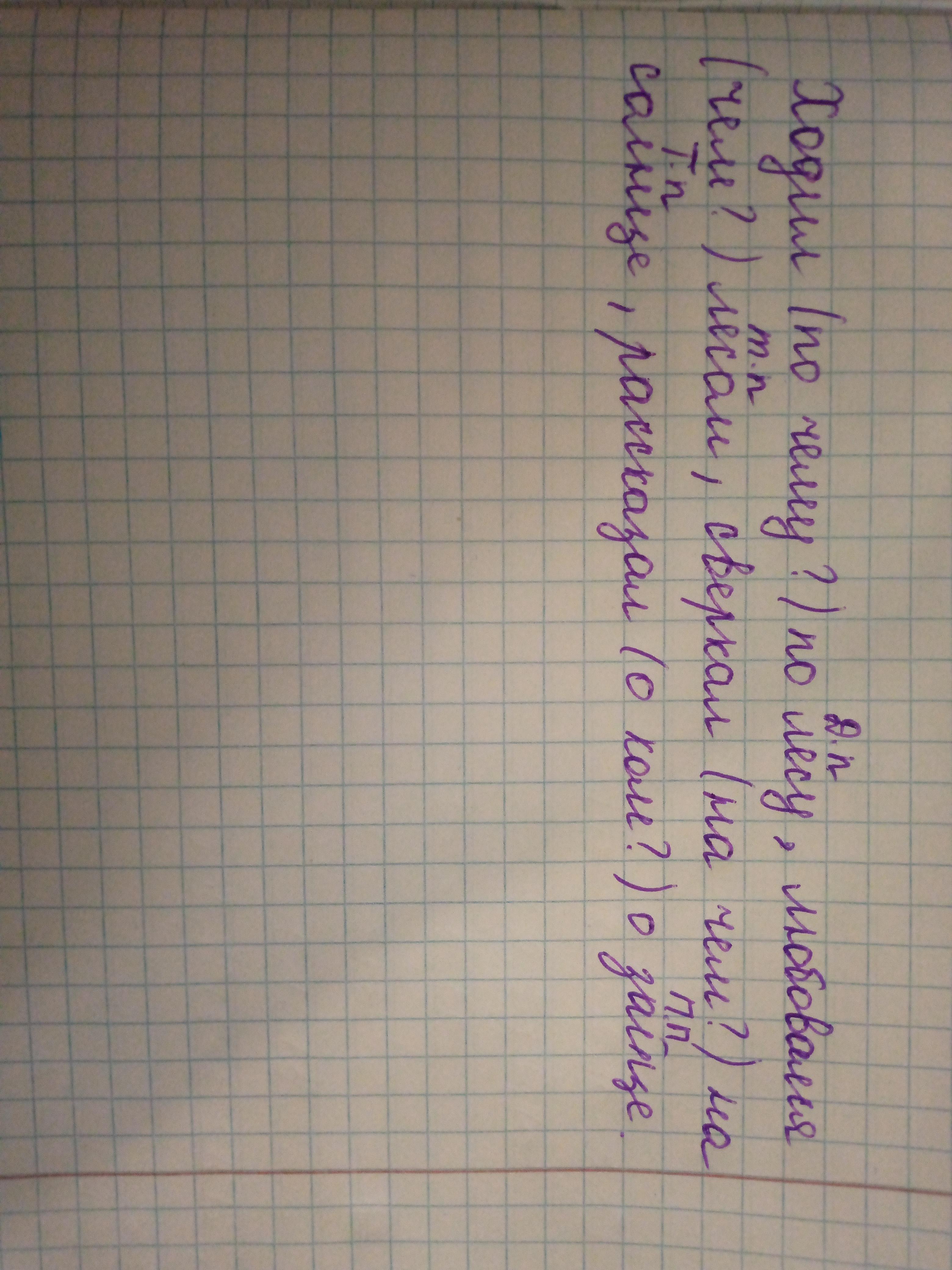 Запиши в скобках вопросы к существительным, укажи падеж. Ходил (...) по лесу(...) ; Любовался (...)лесом(...); Сверкал(...)на солнце(...); Рассказал (...)о зайце(...);