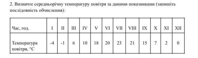 Визначте середньорiчну температуру повітря за даними показниками (запишіть послідовність ОБЧИСЛЕННЯ)