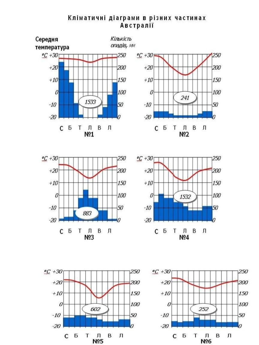 - Визначення типів клімату Австралії за кліматичними діаграмами дано нижче у додатку.