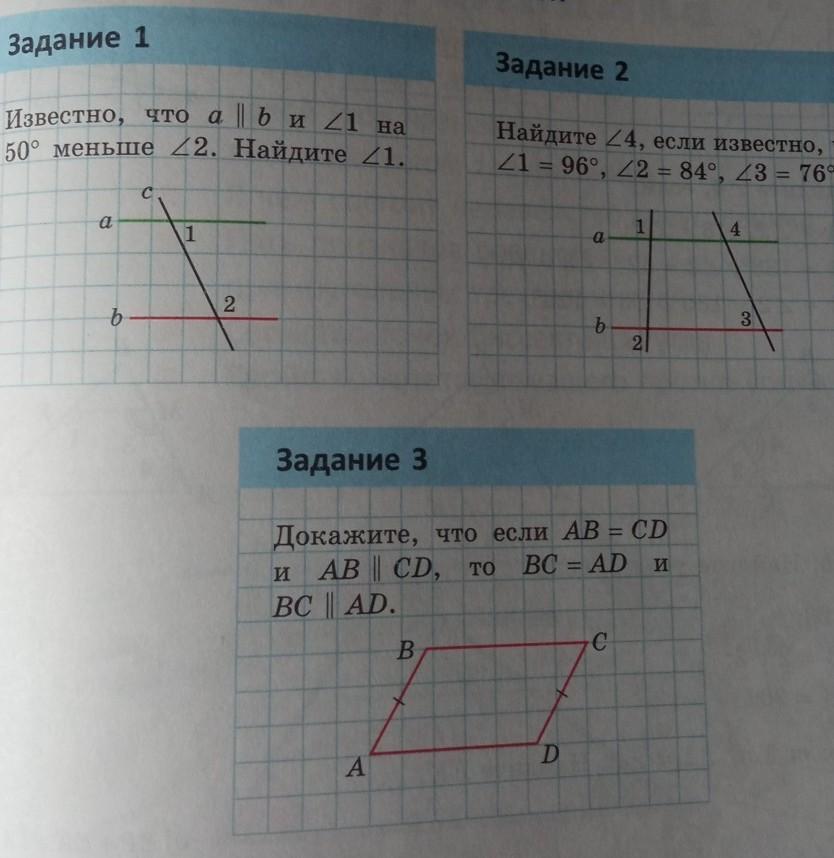 1) пусть <1=х, тогда <2=х+50. Сумма соответственных углов по свойству 180° . Тогда х+х+50=180, х=65. Тогда <1=65, <2=115