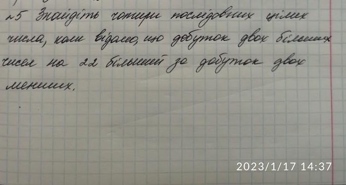 1) если самое меньшее число обозначить как "х", тогда три другие числа можно записать как (х+1), (х+2) и (х+3);