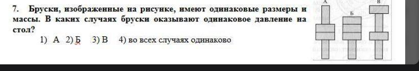 Бруски, изображенные на рисунке, имеют одинаковые размеры и массы. В каких случаях бруски оказывают одинаковое давление на стол?