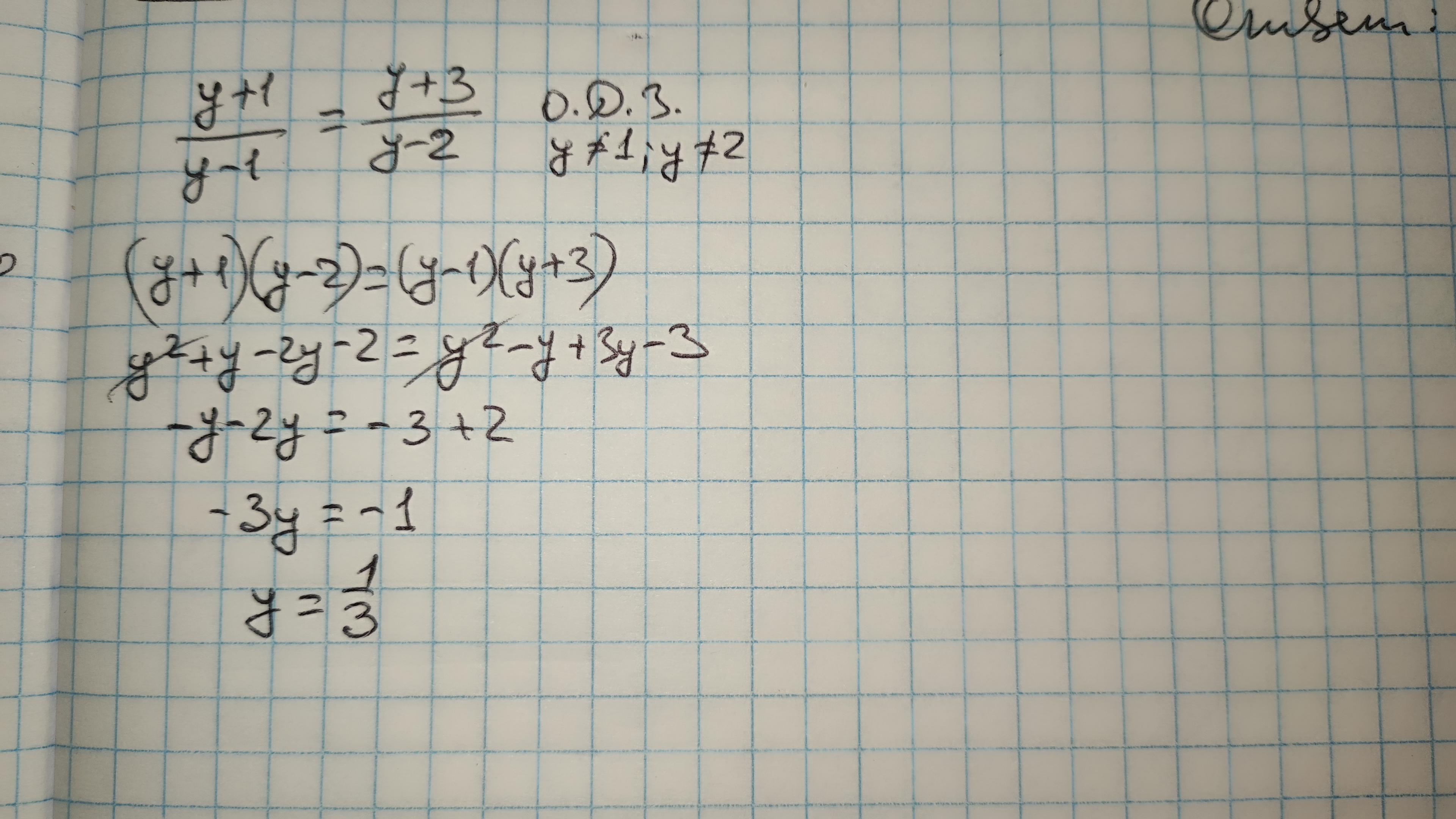 1 (y + 1)/(y - 1) = (y + 3)/(y - 2)