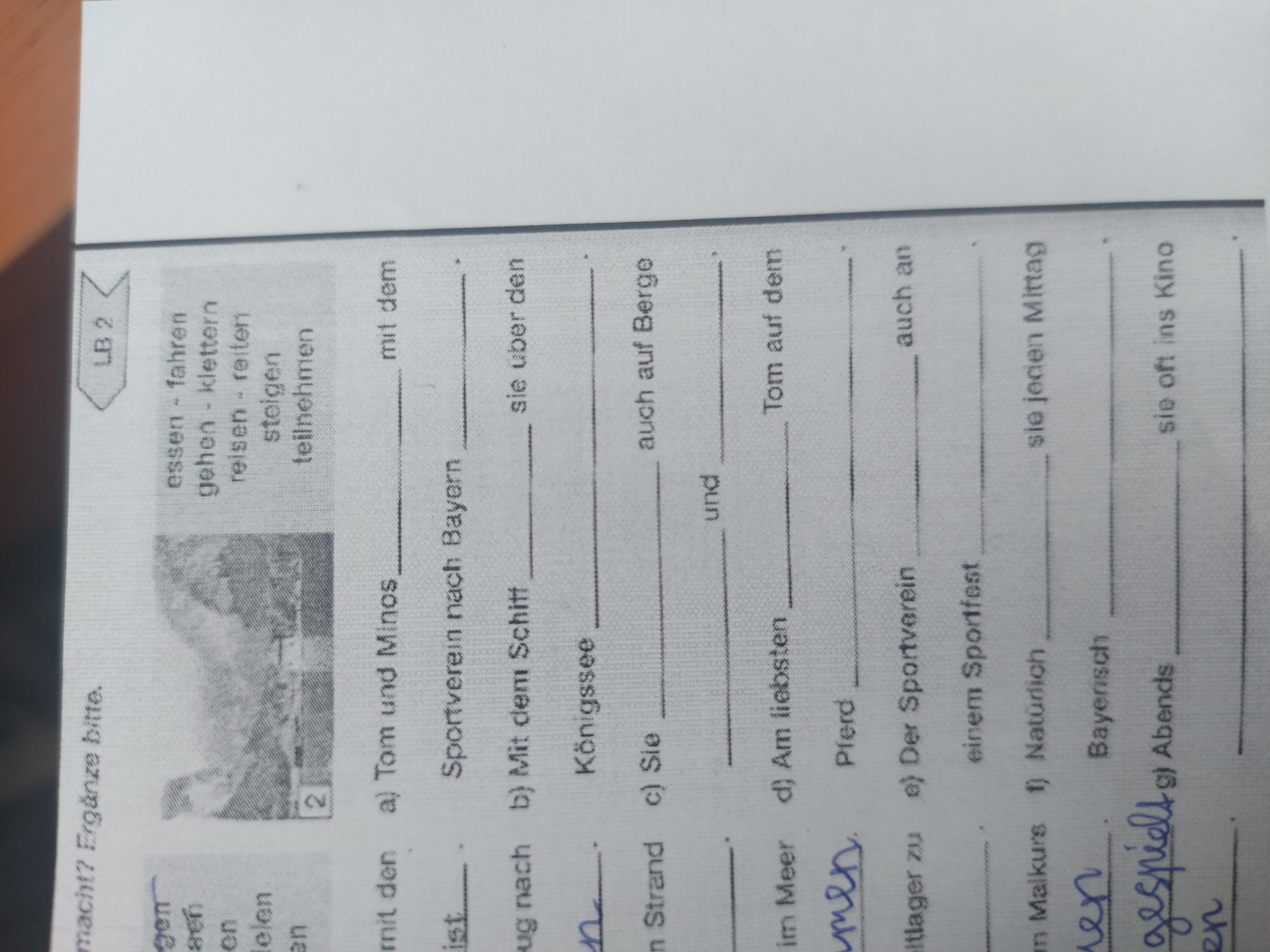 a. Tom und Minos sind mit dem Sportverein nach Bayern gefahren.