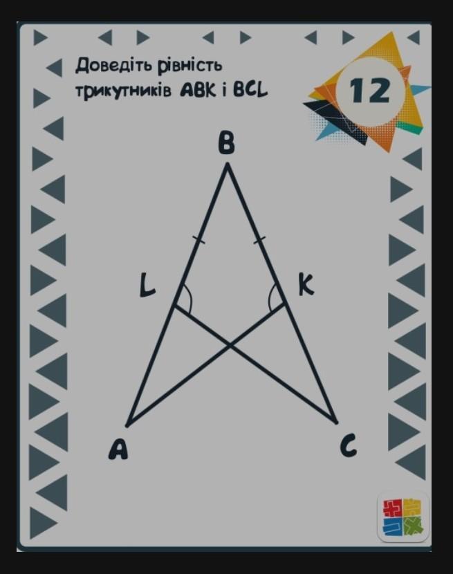 Чи рівні трикутники ABK і CBL ? Доведіть рiвнiсть трикутників ABK і BCL