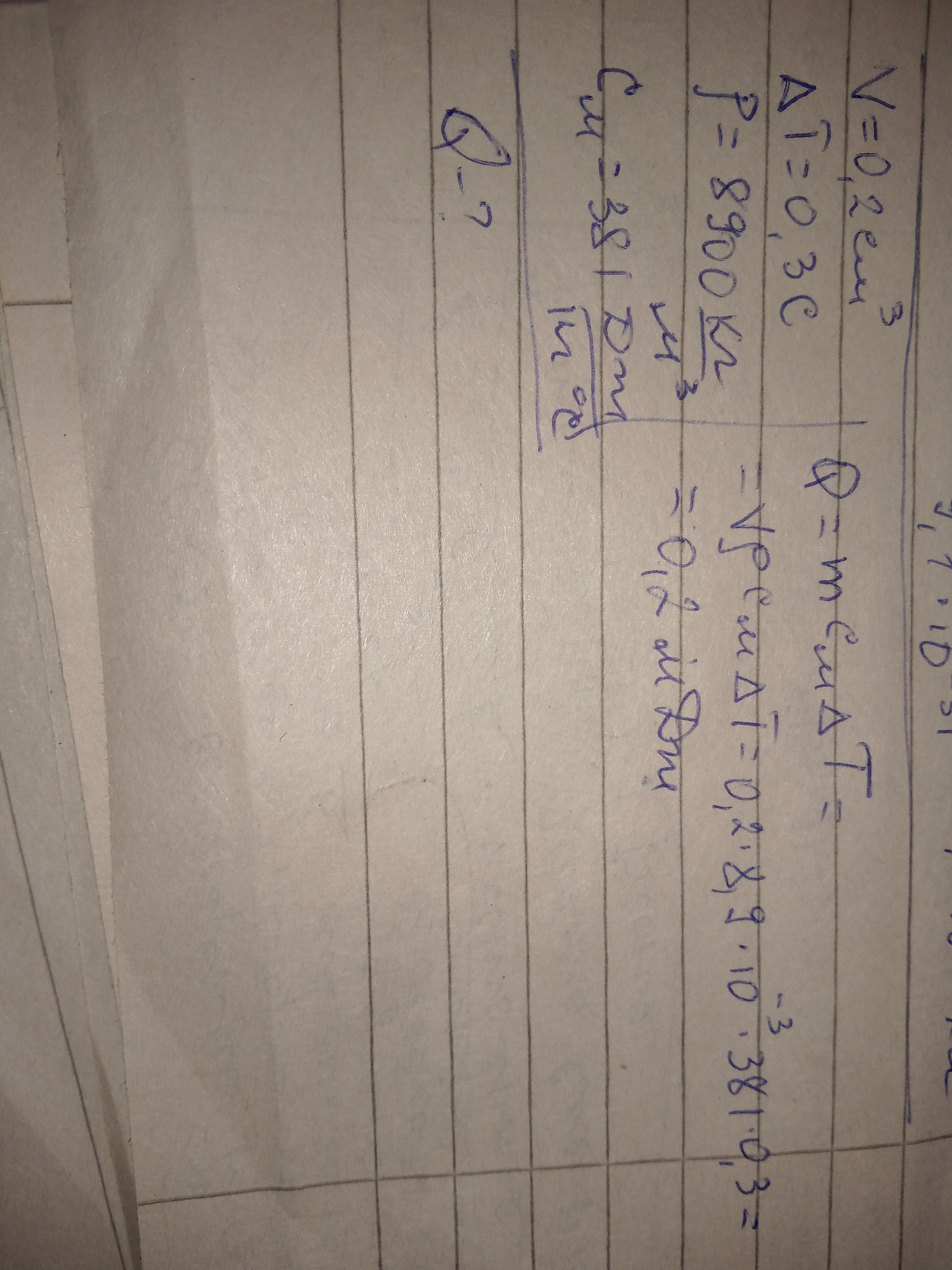Яку дозу випромінювання поглинула мідна об’ємом 0,2 см^3, якщо вона внаслідок опромінення нагрілася на 0,3С? Густина міді 8900 кг/м^3.