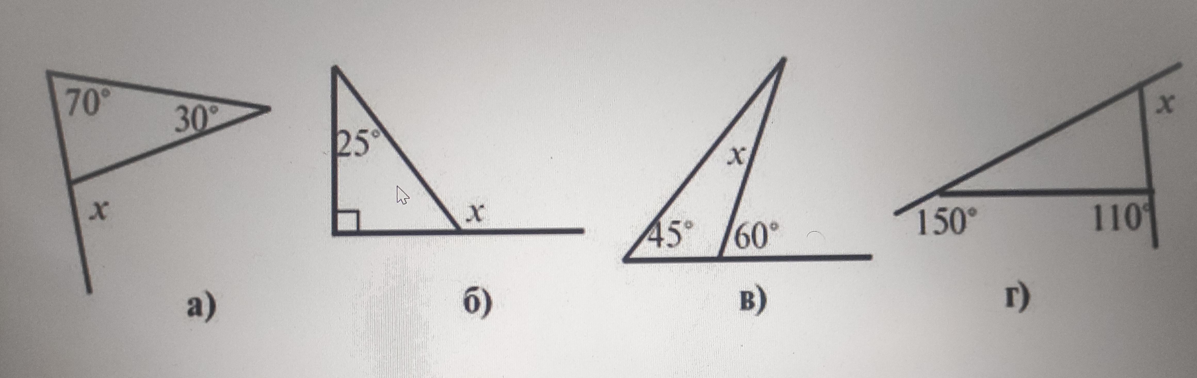 Внешний угол треугольника равен сумме двух внутренних углов треугольника не смежных с ним!