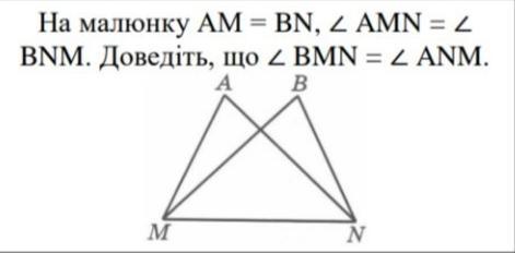 За двумя сторонами у углом между ними треугольники равны, следовательно < BMN = < ANM