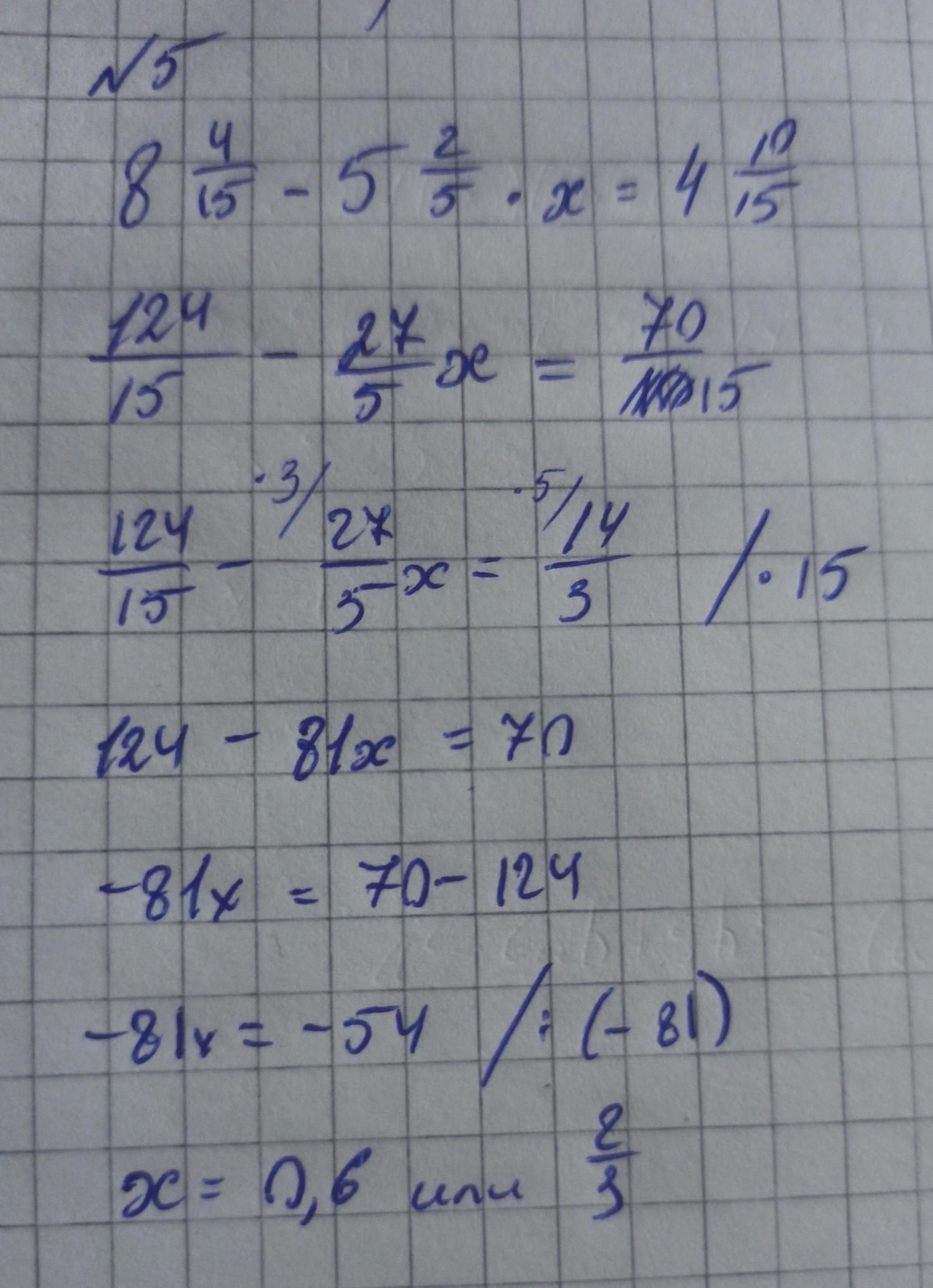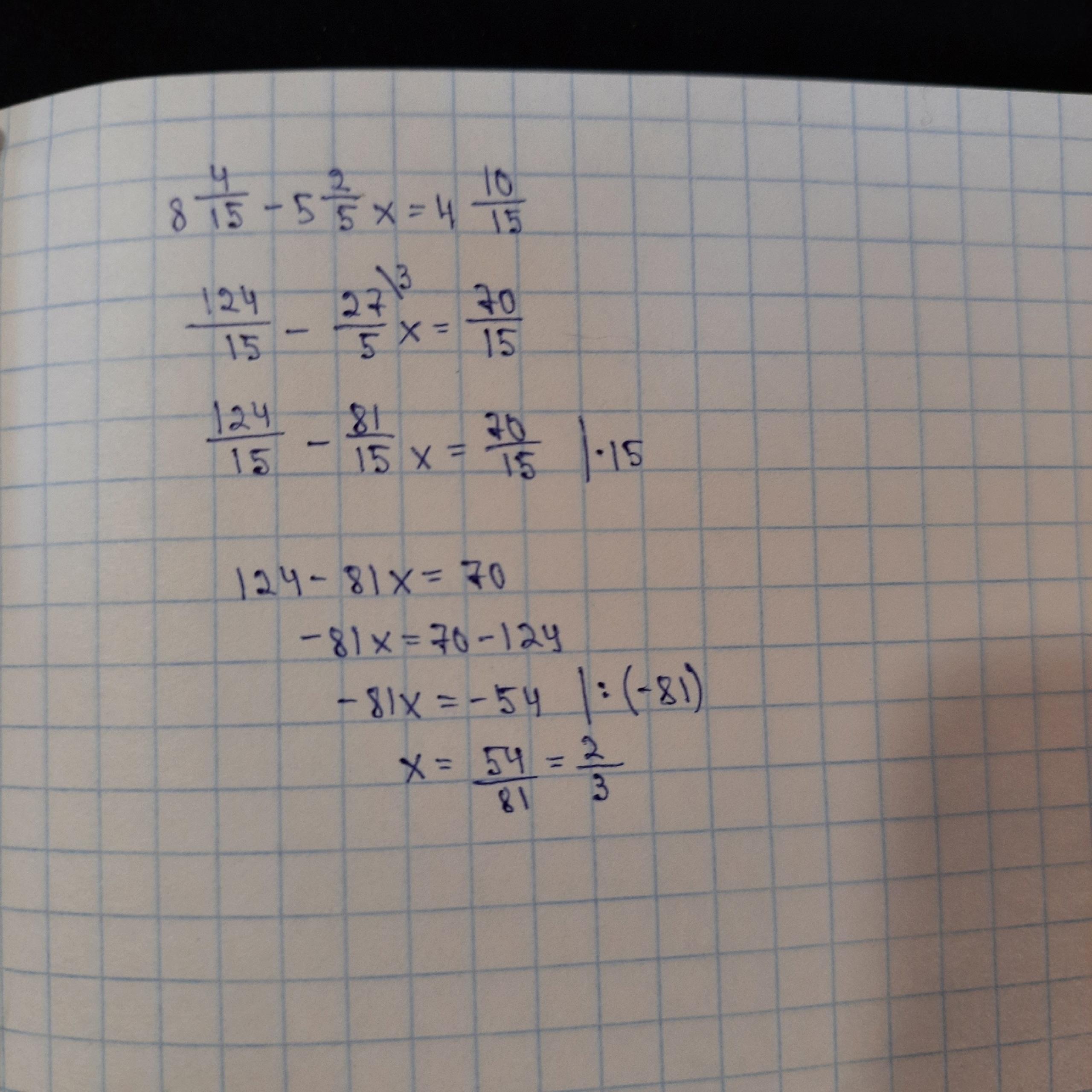 8 целых 4/15 - 5 целых 2/5 • X = 4 целые 10/15