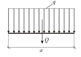 Сосредоточенная нагрузка равна произведению величины равномерно распределенной нагрузки на длину распределения этой нагрузки: