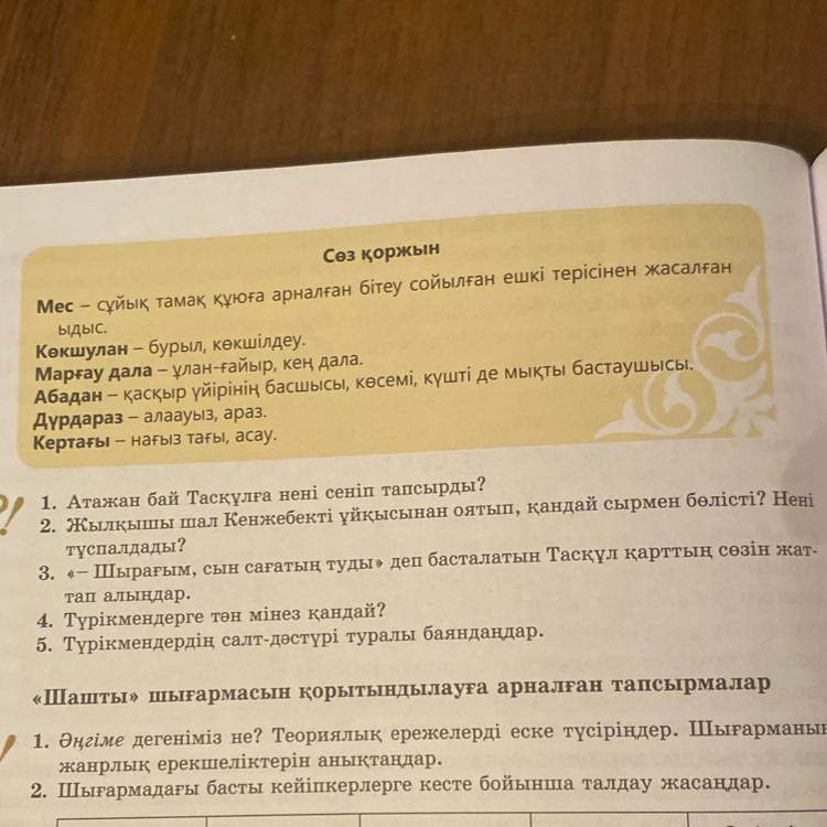 3. «- Шырағым, сын сағатың туды» деп басталатын Тасқұл карттың сөзін жаттап алыңдар.