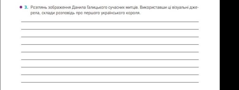 • 3. Розглянь зображення Данила Галицького сучасних митців. Використавши цi вiзуальнi дже- рела, склади розповідь про першого українського короля.