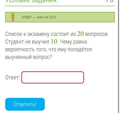 выученные студентом - 10 (аналогично что невыученных тоже 10)