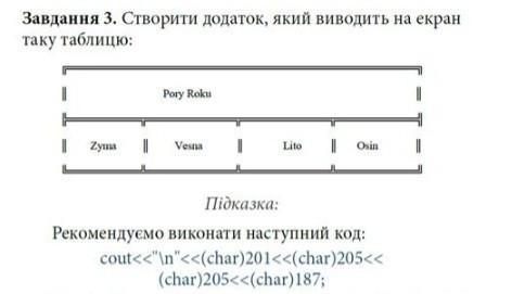 cout << "\n" << (char)186 << "Zyma" << (char)186 << "Vesna" << (char)186 << "Lito" << (char)186 << "Osin" << (char)186;