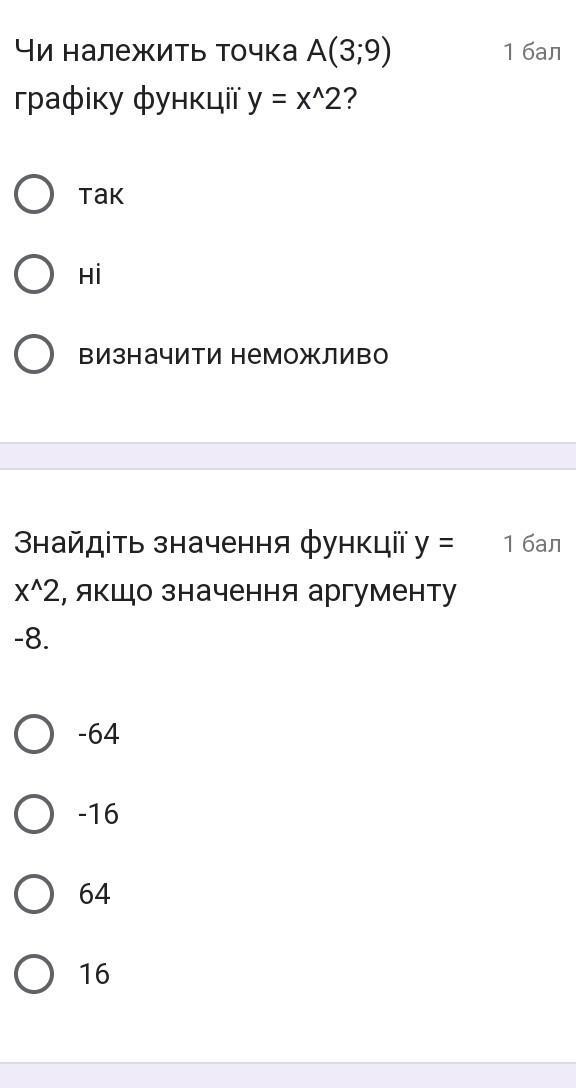 подставляем значения в функцию у=х²