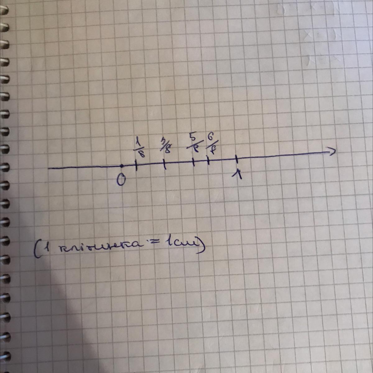 Накресліть координатний промінь одиничний відрізок якого дорівнює 8 см точка позначити на ньому точки що відповідають дробами 1/8 5/8 6/8 3/8