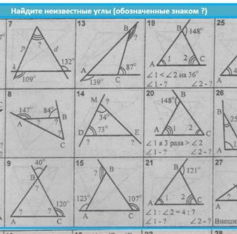 срочно!! номер 19,21 даю 25 баллов!!!! пожалуйста найдите неизвестные углы со знаком "?"