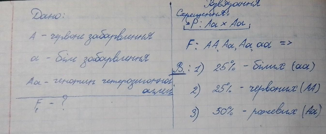 ПРОШУ!!!! БЛАГАЮ!!!!!!!! БУДЬ ЛАСКААА ДОПОМОЖІТЬ ХТО НЕБУДЬ!!! Треба здати ЗАВТРА! ВЖЕ 9 РАЗ ПИШУ. ТЕРМІНОВО! Дам 50 балів! Біологія. 9 клас. Розв'яжіть генетичну задачу. (Написати Дано та розв'язання). У рослини ген А визначає забарвлення оцвітини. Домінантний алель А забезпечує червоне забарвлення, а рецесивний алель а-біле. Домінування є неповним, і гетерозиготи мають рожеве забарвлення оцвітини квіток. Які генотипи й фенотипи будуть мати гібриди від схрещування двох гетерозиготних особин?