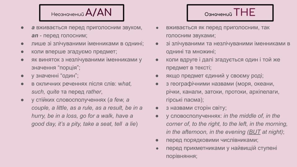 ( на фотографії прикріпила основні правила вживання "a", "an" та "the")