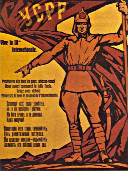 плакат на підтримку комуністичного режим в Україні 1919 р.і встновлення Української Соціалістичної Радянської Республіки (УСРР)