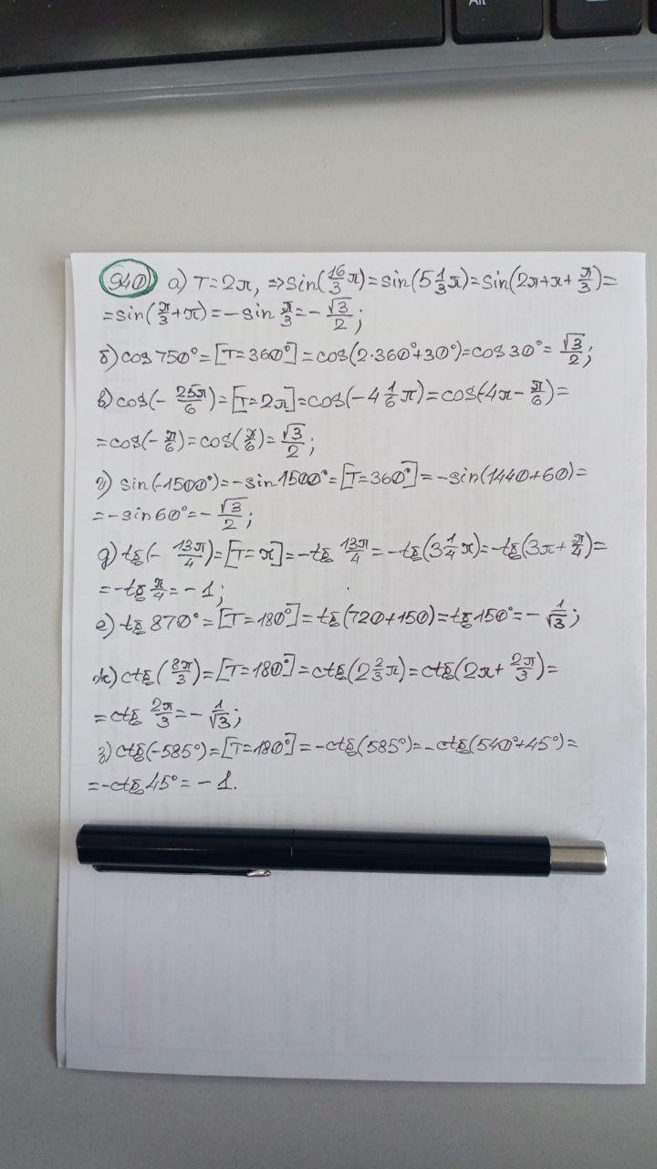 Суть: 1) у каждой функции есть свой период, через которые повторяются все её значения, поэтому 2) необходимо для каждого задания отбросить максимальное количество периодов и 3) если есть отрицательный знак, то воспользоваться чётностью/нечётностью функции (косинус - чётная), после чего 4) записать табличное значение.