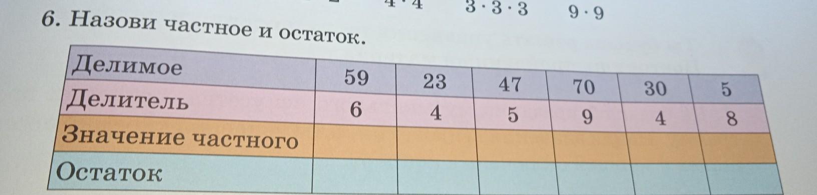 Четвёртый столбик: значение ч. - 7, остаток 6