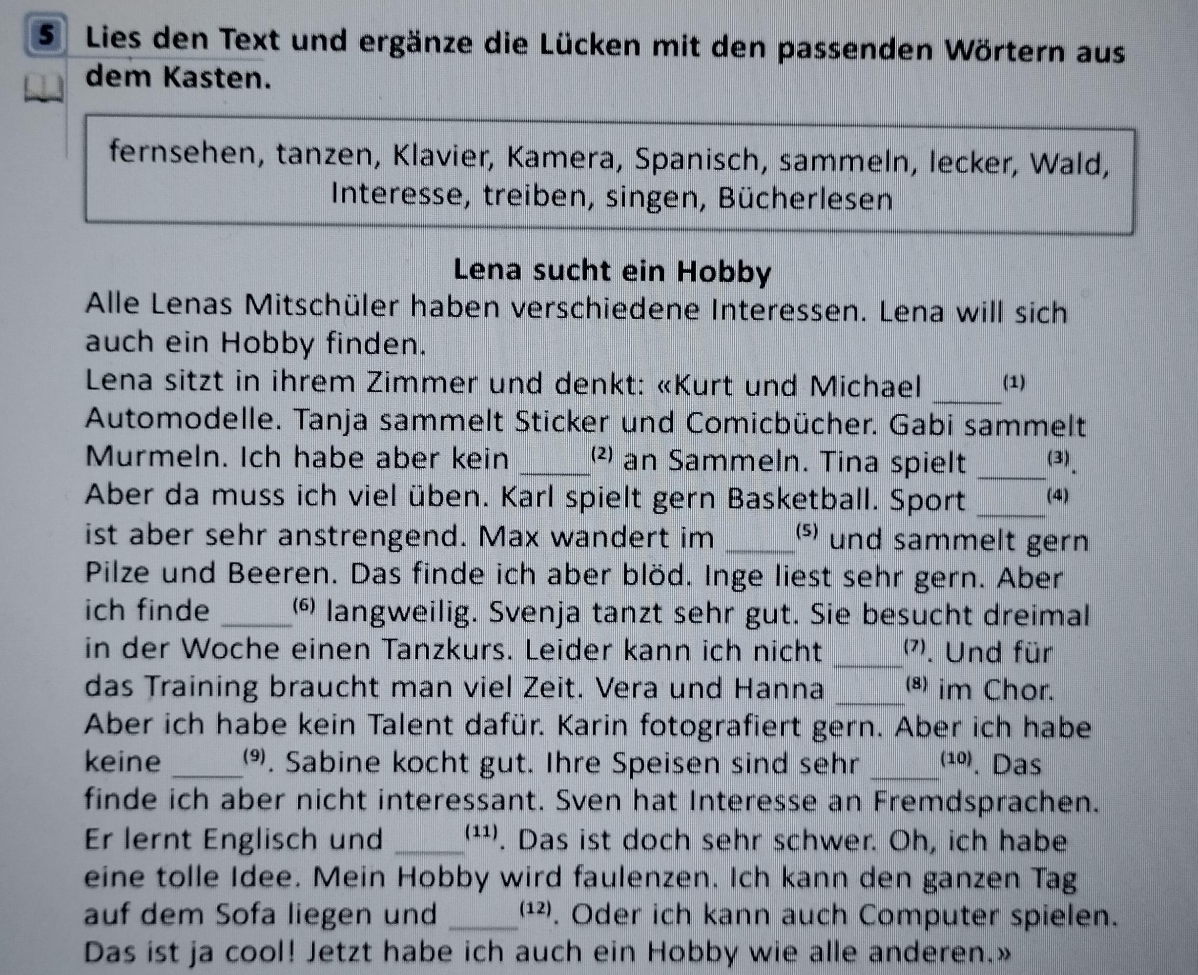 Lies den Text und ergänze die Lücken mit den passenden Wörtern aus