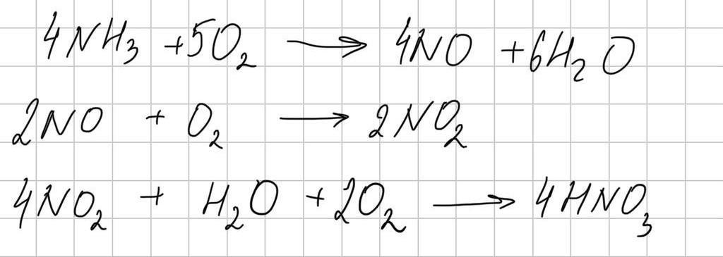Выразить с помощью химических уравнений реакции по схеме, какая из них отражает промышленное получение азотной кислоты: