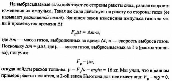 Спасибо конечно, но это же решение к иной задаче. (Ракета массой 2 т неподвижно висит над землей, выбрасывая вниз реактивную струю со скоростью 1250 м/с. Какая масса газов выбрасывается в струе за 1 с? g = 10 м/с2)