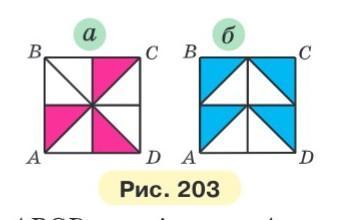 751. Сторона квадрата ABCD дорівнює 4 см. Знайдіть загальну площу зафарбованих частин квадрата.