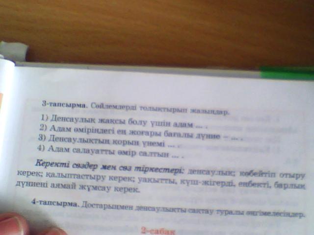 1)Денсаулық жақсы болу үшін адам уақытты, күш-жігерді, еңбекті, барлық дүниені аямай жұмсау керек.