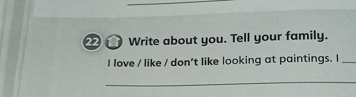 Write about you. Tell your family. / don't like looking at paintings. I I love/like