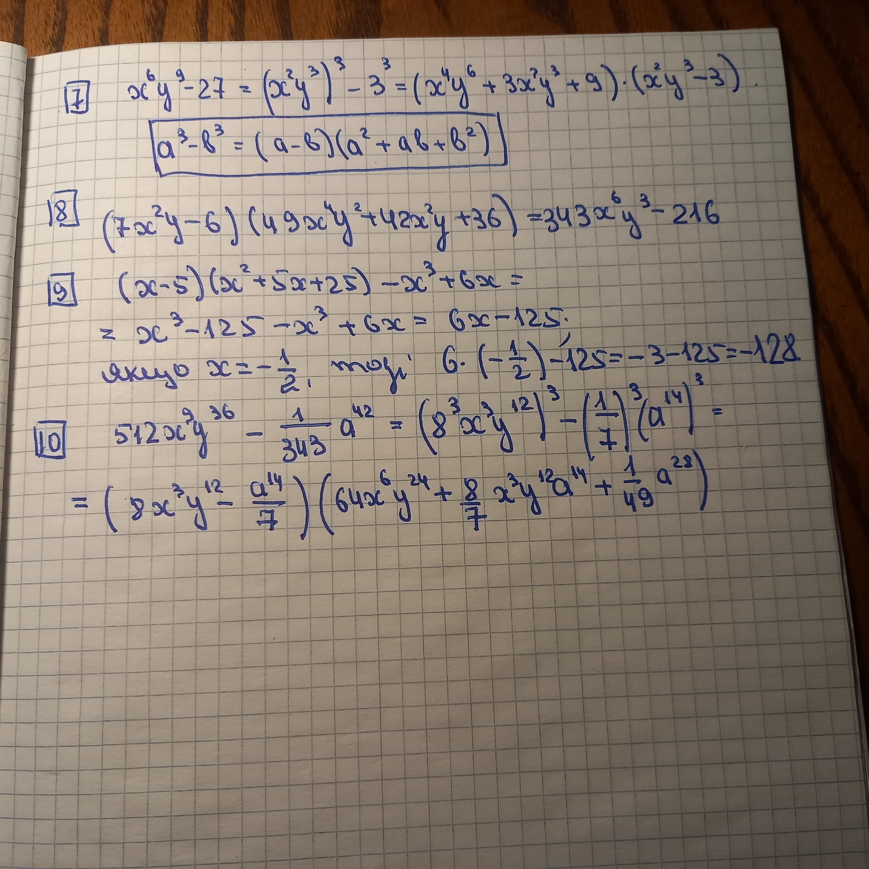 (7x2y-6)(49x4y2+42x2y+36)=343x6y3-216;