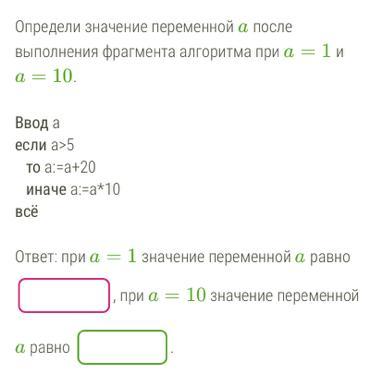 Ответ: при а = 1 значение переменной а равно 10, при а = 10 значение переменной а равно 30.