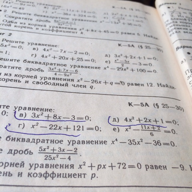 в) Д.= 8^2 - 4 * 3*(-3)=64+36=100;10