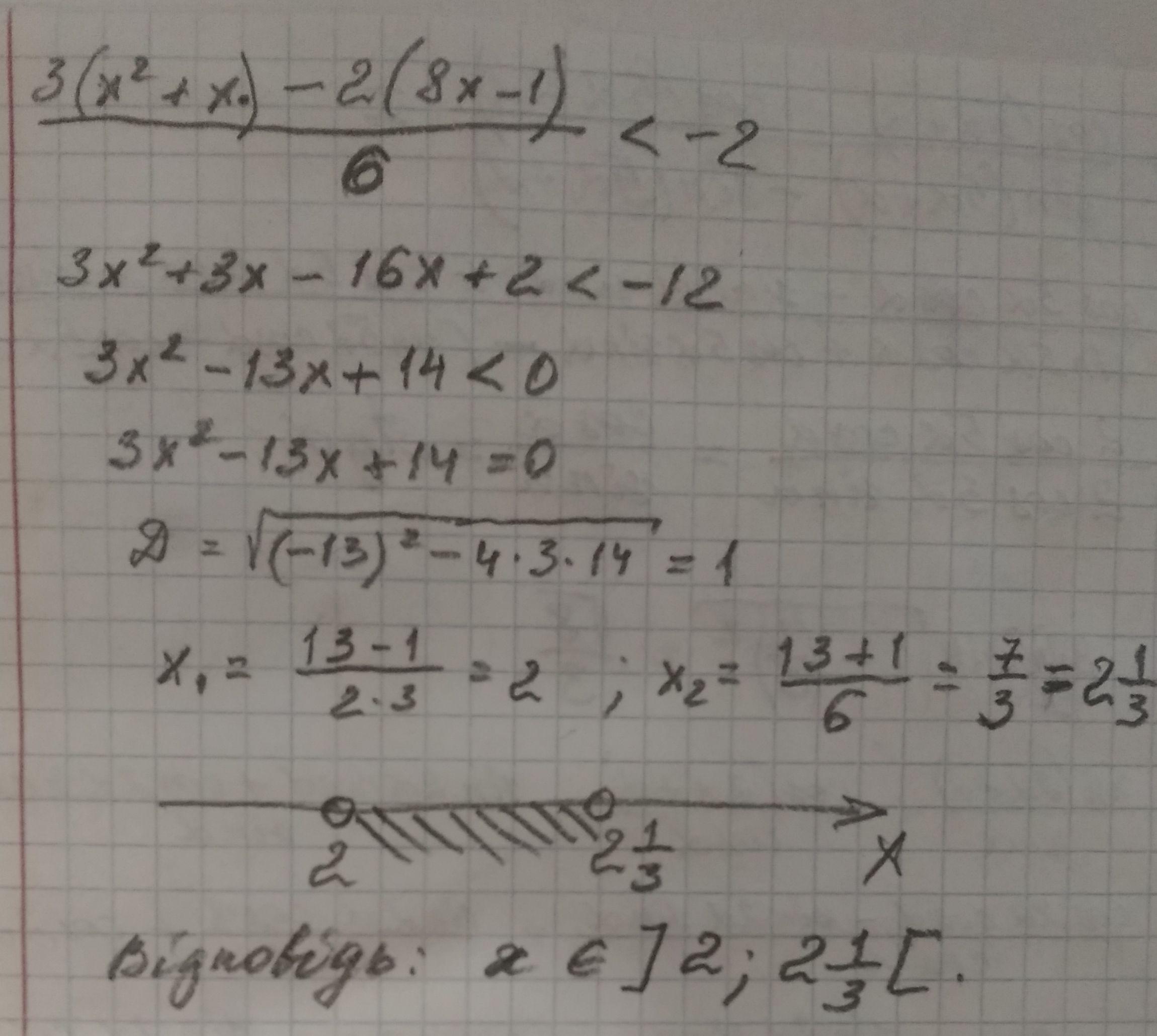 Ответ: Розвязком нерівності буде проміжок від 2 до 2 , не включаючи кінців.