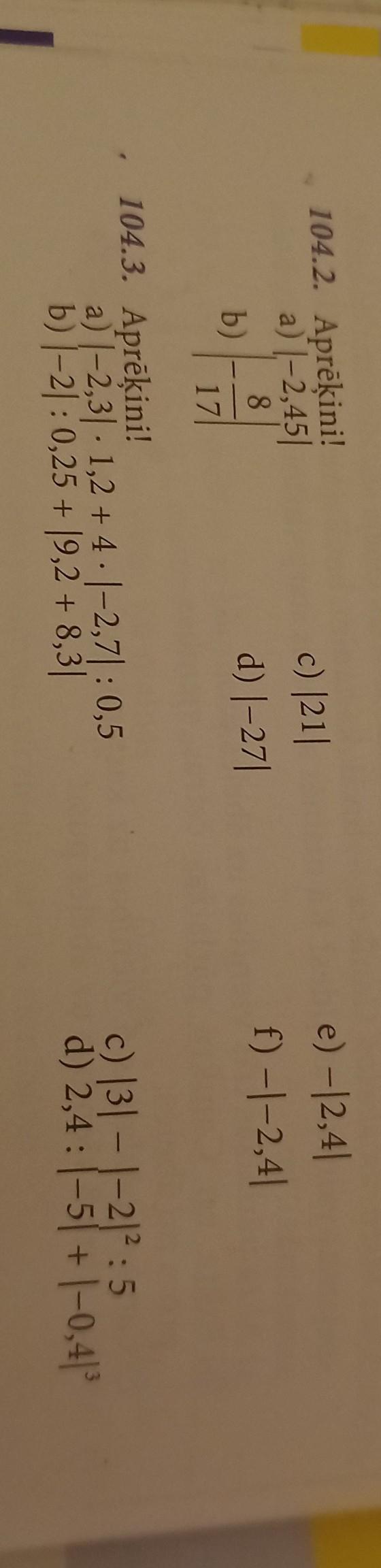 а) |-2.3|×1.2+4×|-2.7|÷0.5= 2.3×1.2+4×2.7÷0.5=2.76+21.6